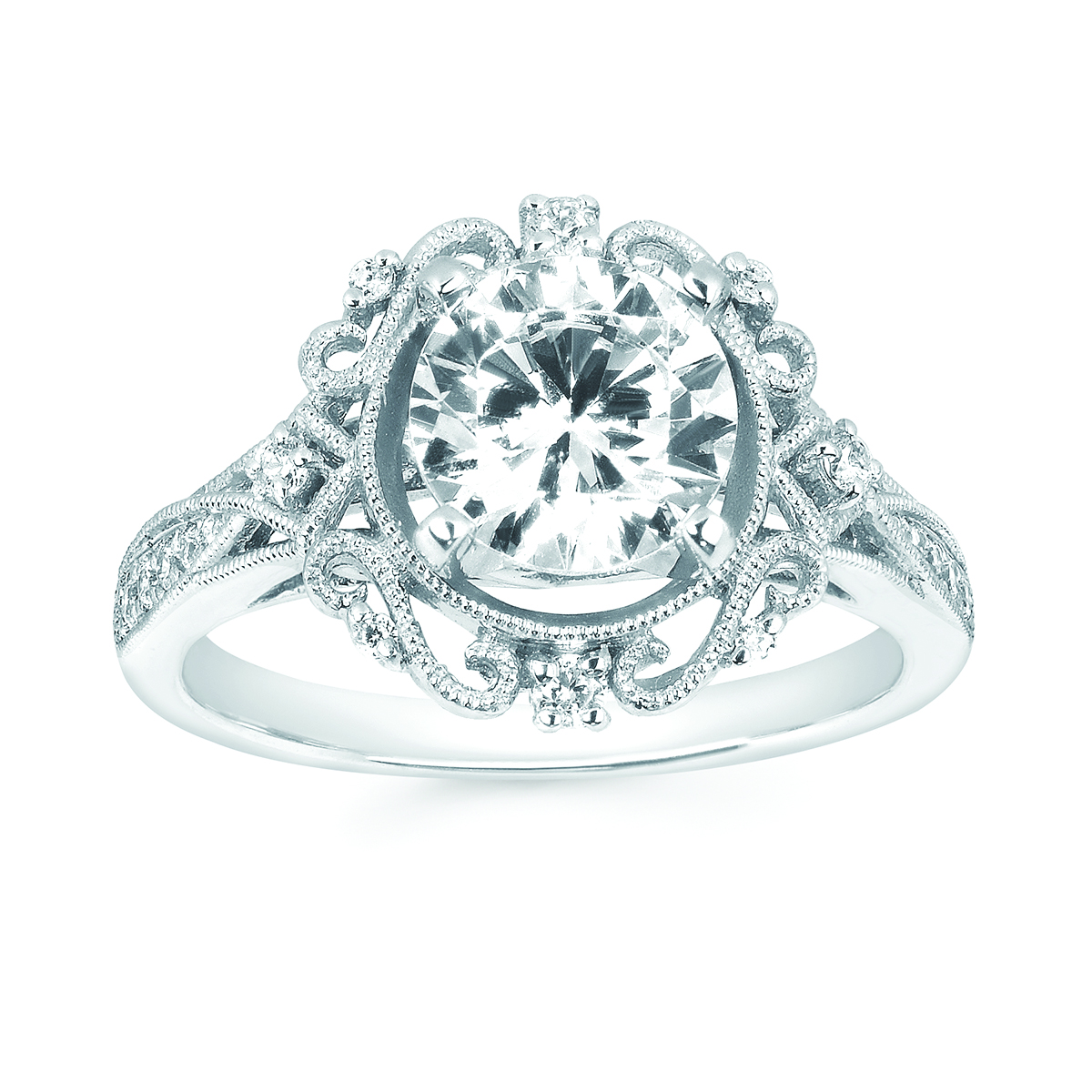 Engagement Ring Forever ElegantĀ® 1/6 Ctw. Diamond Semi Mount shown with 1.50 Ct. Round Center Diamond in 14K Gold